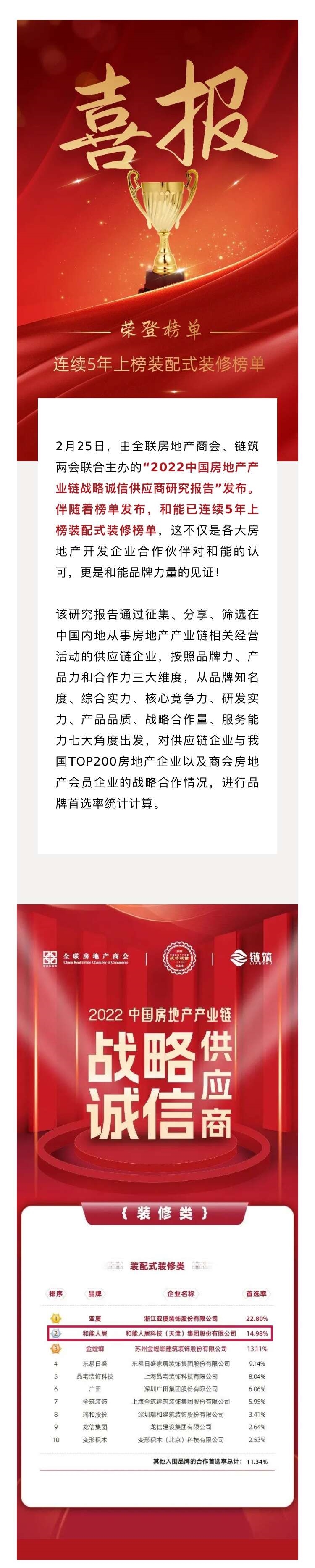 上一條:房建供應鏈綜合實力TOP500榜單發(fā)布,和能連續(xù)五年蟬聯(lián)裝配式內(nèi)裝榜首!
