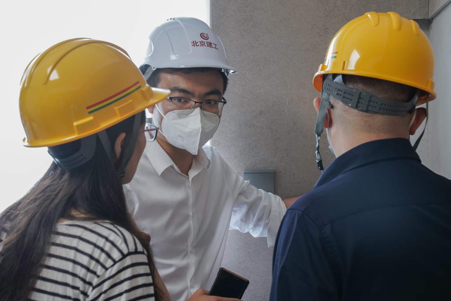 在此次參觀過程中,眾人循著北京城市副中的脈絡(luò),近距離觀看燕保丁各莊家園、含英園、朗清園、北京城市副中心職工周轉(zhuǎn)房一期、C2行政辦公區(qū)、0701街區(qū)等眾多由和能參與實施的裝配式裝修項目,從而感受智能建造的魅力。