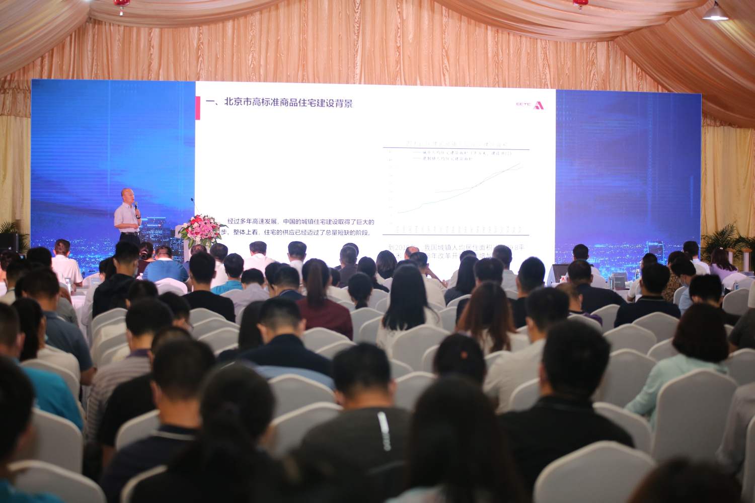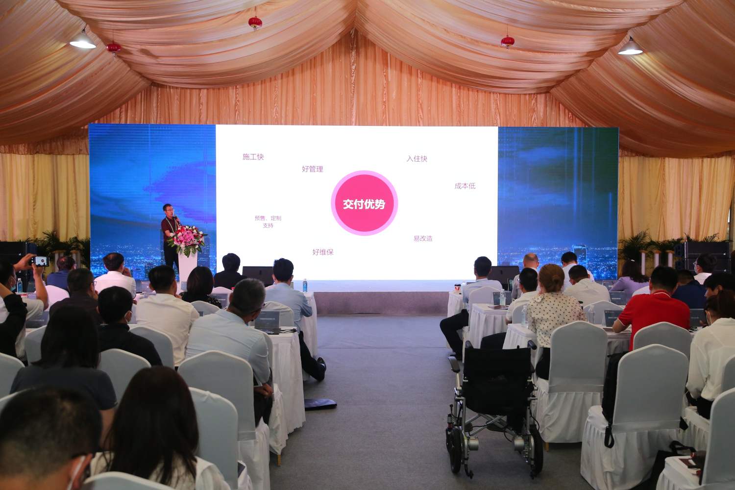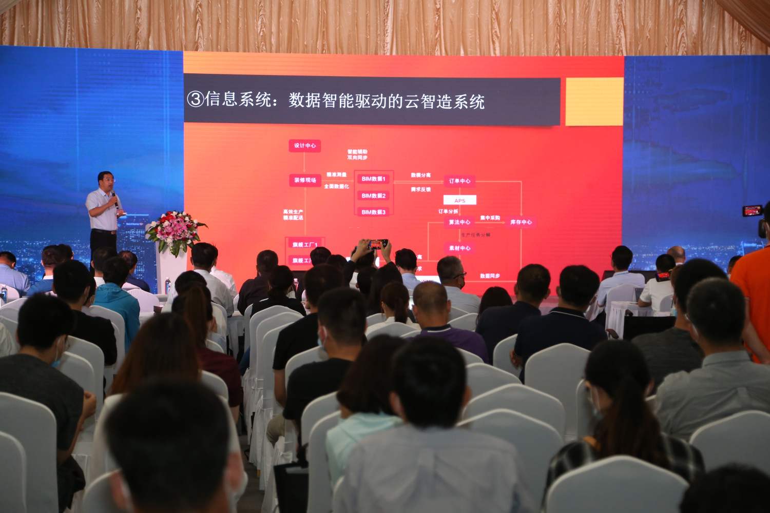 和能人居科技集團居住事業(yè)部總經理宋輝先生發(fā)表了以“裝配式裝修助力高標準住宅建設”為主題的演講,并向來賓分享了全屋裝配式裝修智能制造體系和全產業(yè)鏈布局,以及關于智能智造、技術革新和產業(yè)融合心得。