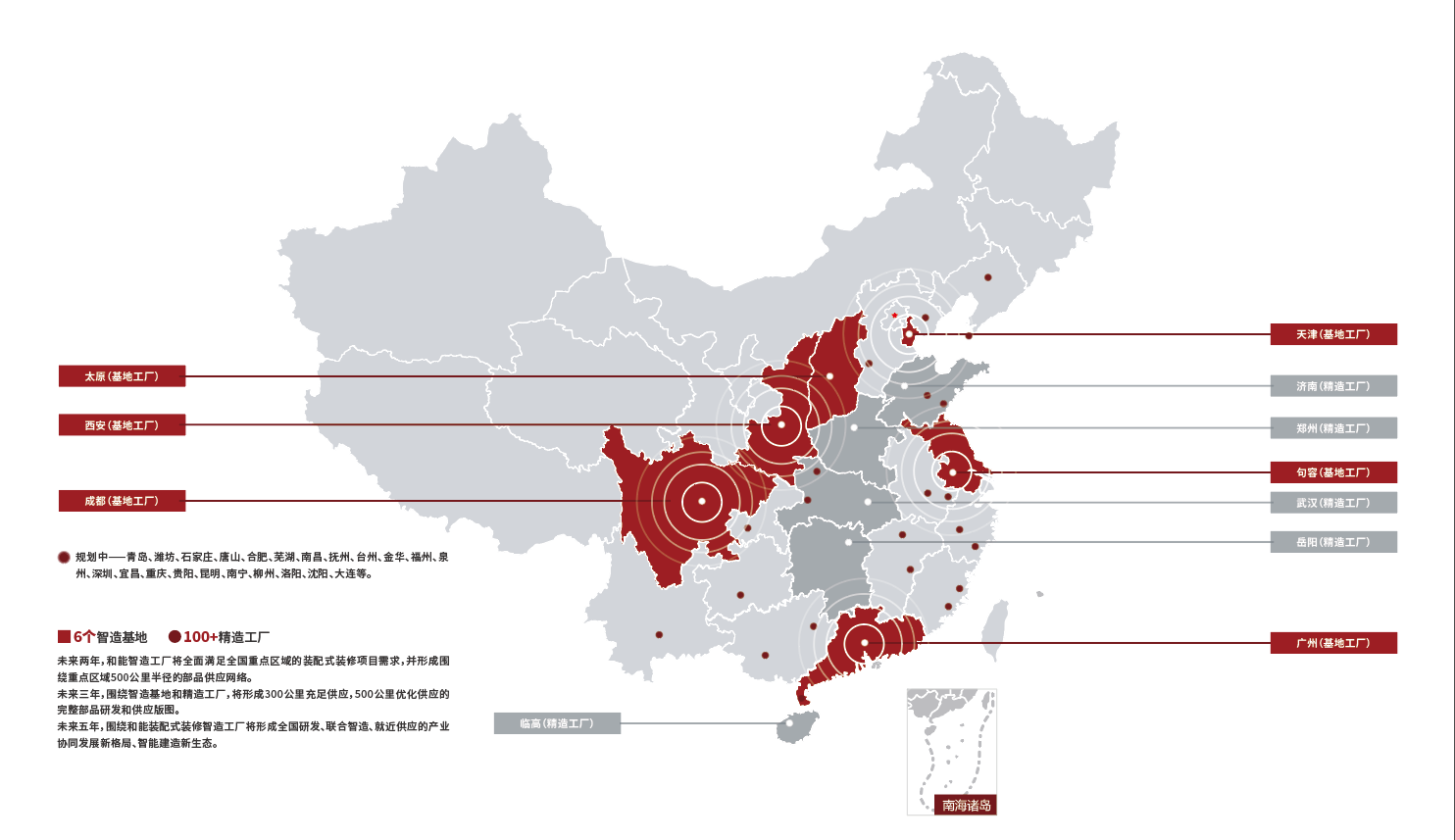 同時(shí),以全國(guó)六大部品智能制造工廠組成的工業(yè)4.0產(chǎn)業(yè)集群為跳板,通過(guò)實(shí)體制造工廠和數(shù)字工廠的雙輪驅(qū)動(dòng),和能智能制造車間可以滿足全國(guó)項(xiàng)目高標(biāo)準(zhǔn)內(nèi)裝建造需要的定制化主材部品供應(yīng)。